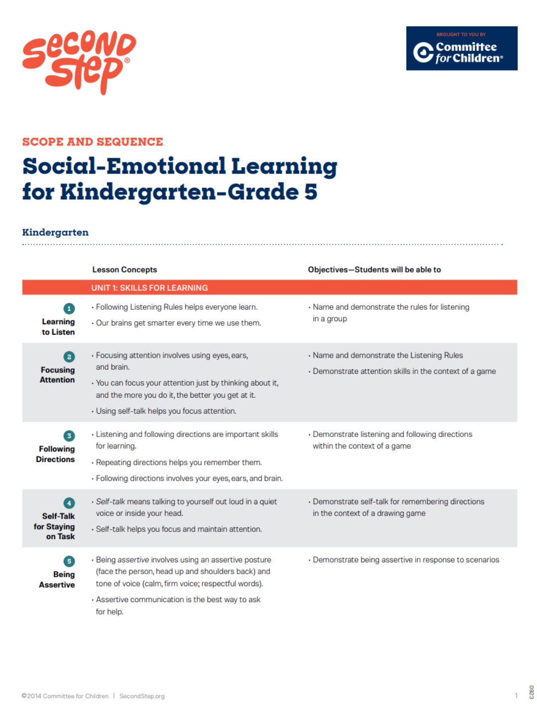 Second Step® Classroom Kit K-5 Scope & Sequence Full Version