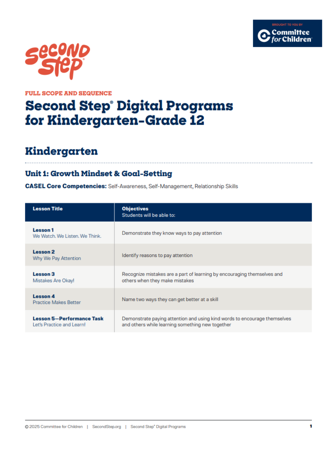 Second Step® Out-of-School Time Scope & Sequence Short Version